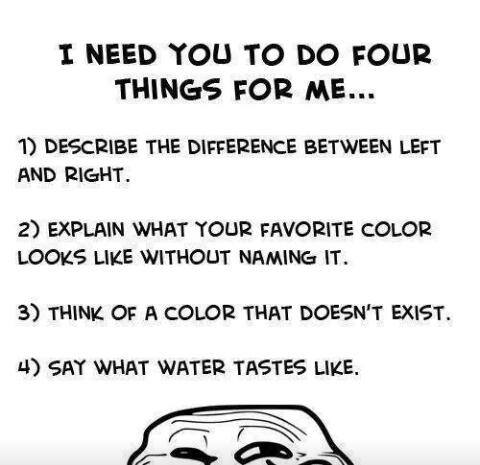 Here are my answers:1) Arbitrary directions used to confused people who are standing opposite you.